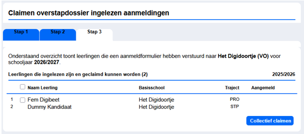 Selecteer de gewenste leerlingen en druk op Collectief claimen.