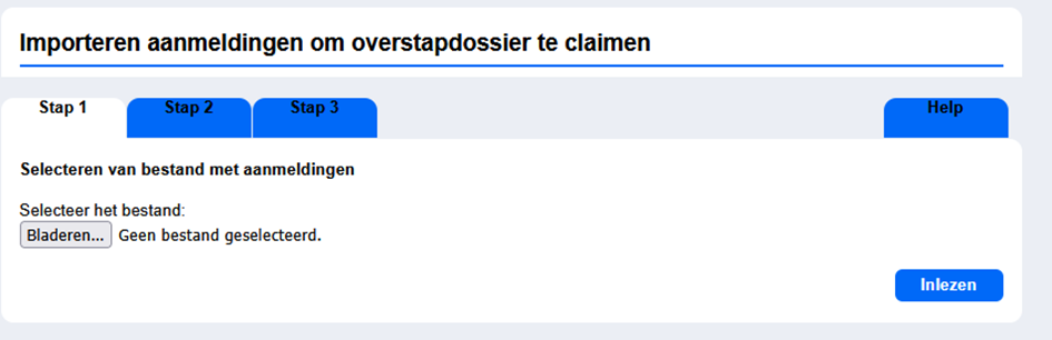 • Bij Claimen CSV dient het CSV-bestand aan de vereiste indeling te voldoen (zie tab Help, hier kun je ook