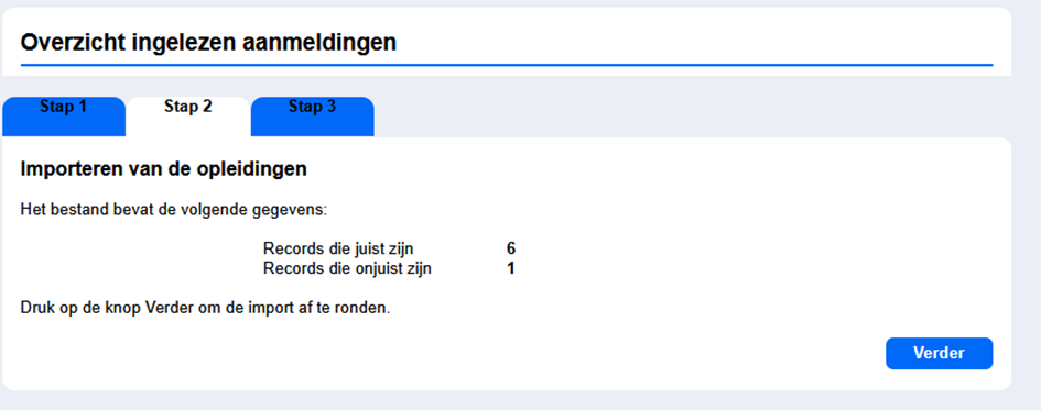 Bekijk de informatie m.b.t. records die juist/onjuist zijn en druk op de knop Verder;