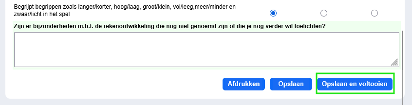 Elk ontwikkelgebied wordt afgesloten met een tekstvak, waarin je eventuele bijzonderheden m.b.t. dit ontwikkelgebied kunt toelichten;