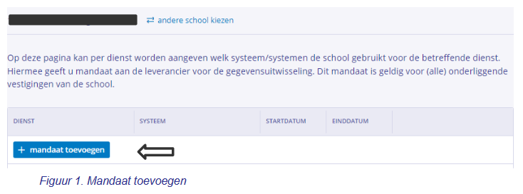 Zie voor meer informatie de site van Kennisnet: https://www.kennisnet.nl/onderwijs-service-register/ Stap 1a - Mandaat toevoegen